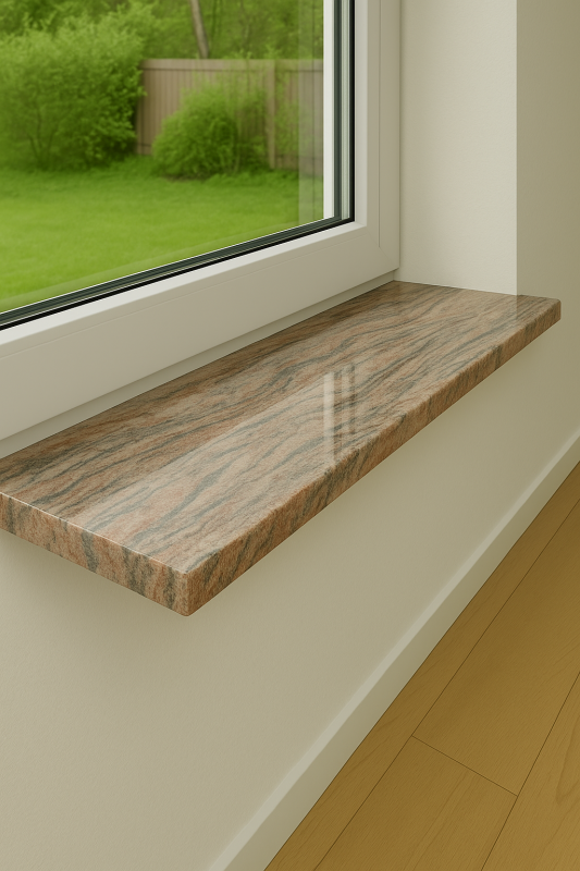 Fensterbank Juparana India poliert – Ausdrucksstarker Naturstein mit exotischer Maserung