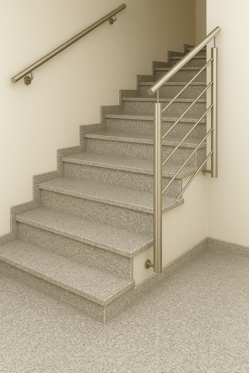 Pflegeleichte Granittreppe mit dezentem Design – Hell, robust und vielseitig kombinierbar