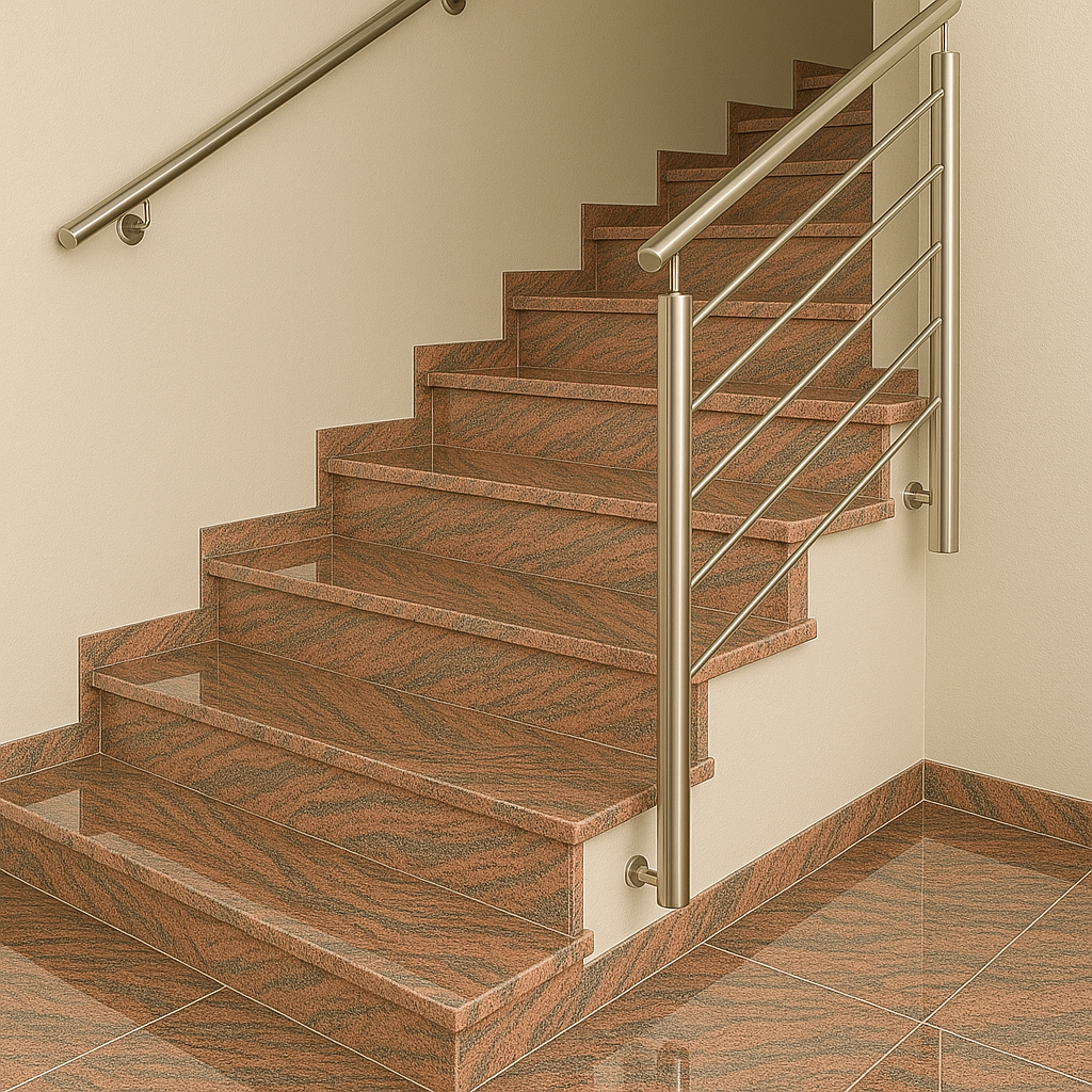 Juparana India poliert – Natursteintreppe mit ausdrucksstarker Maserung in warmen Tönen