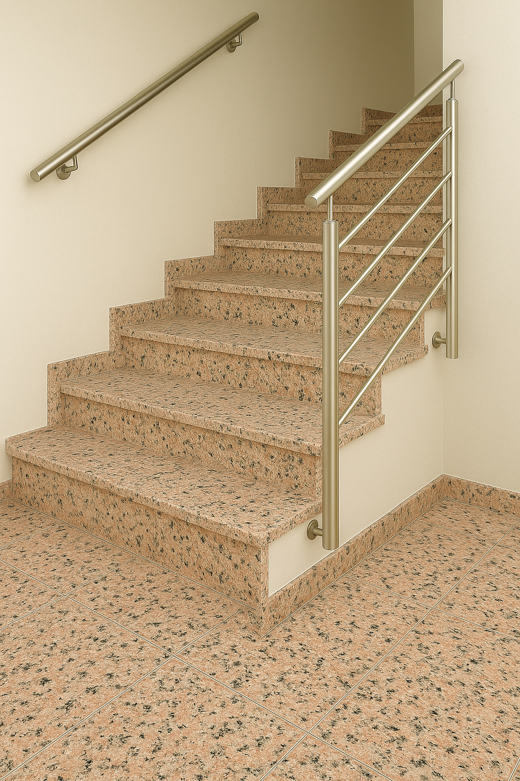Polierte Granittreppe mit sanfter Farbgebung – Zeitlos, pflegeleicht und robust