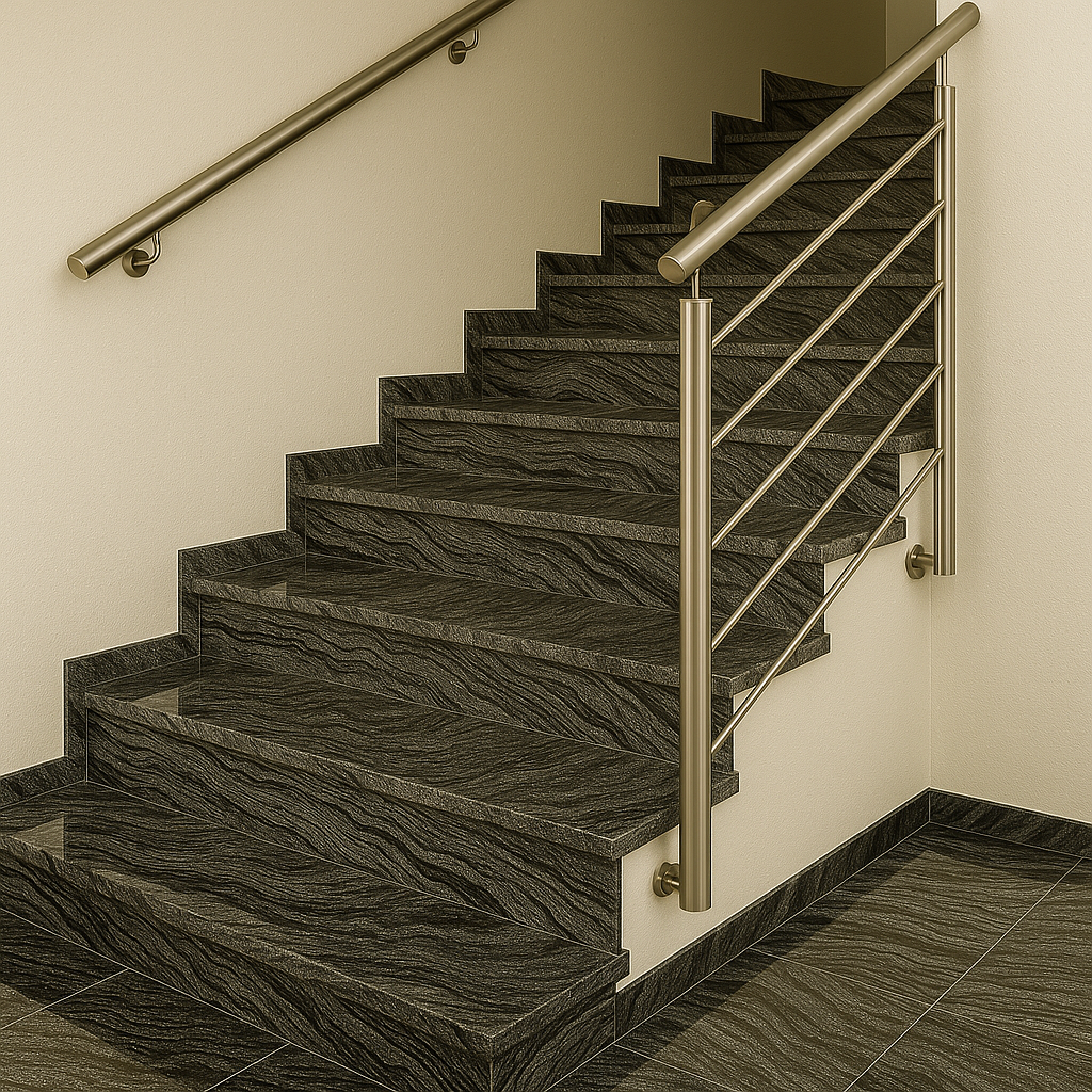 Natursteintreppe in Schwarz-Grau mit silbernen Linien – Ausdrucksstark, edel und designorientiert